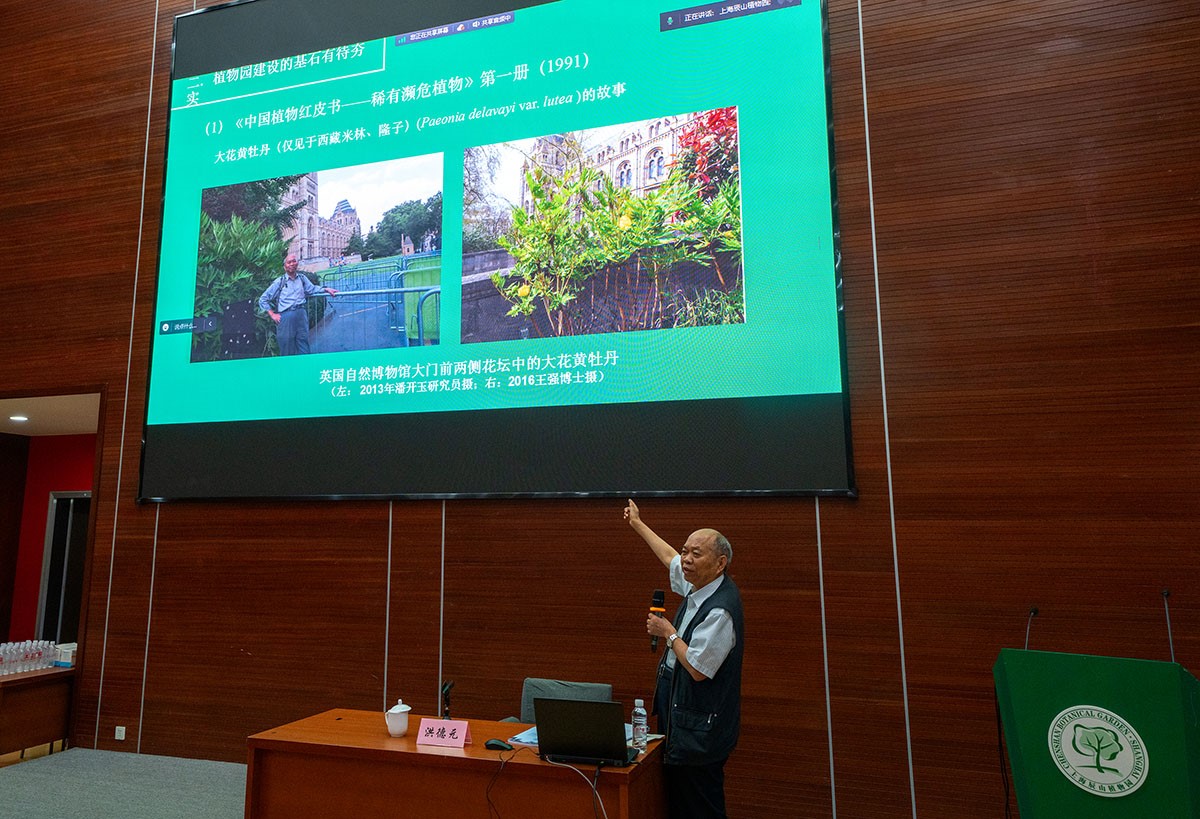 中国科学院植物研究所洪德元院士受邀出席本届开班仪式,并向辰山植物园图书馆赠送了最新出版的《世界牡丹和芍药研究》专著。洪院士为本届培训班开讲第一课、主题为“植物园与分类学”的学术报告。他从植物园的发展历史和使命切入,指出植物分类学是植物园工作的基石,准确鉴定保护对象是植物园迁地保育的关键所在。通过山茶属、冬青属、芍药属为例,说明了当植物分类错误时会对植物保护工作产生重大影响。他以世界牡丹和芍药的物种划分为例详细阐述了如何开展分类学研究、如何准确界定物种。最后洪院士对物种的概念做了一个全面的总结和介绍,提出了更为实用、具有良好可操作性的“遗传-形态”物种概念。洪德元院士的报告引起了大家的强烈兴趣和深刻思考,在场学员踊跃提问,洪德元院士亲切耐心地为大家做了解疑答惑。