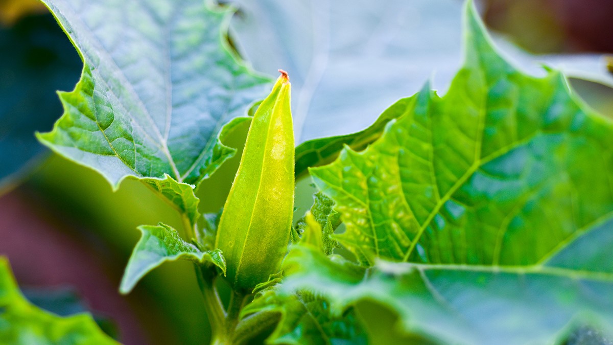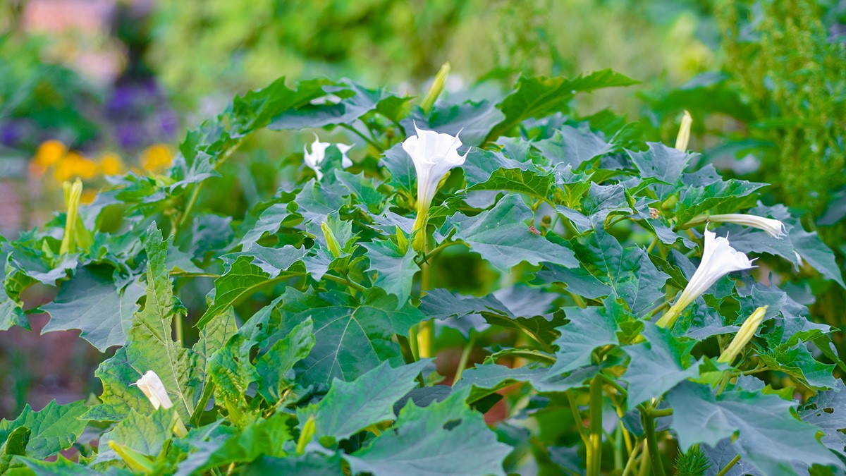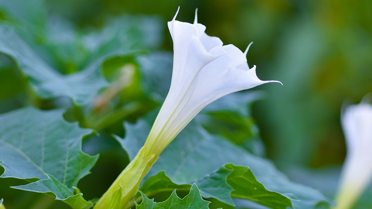 观赏提示:曼陀罗植株含毒性,请勿触碰或采摘,静观其美即可。