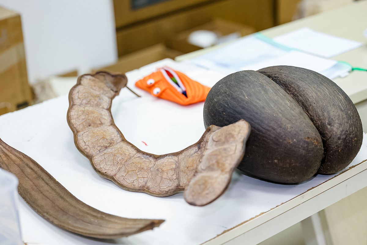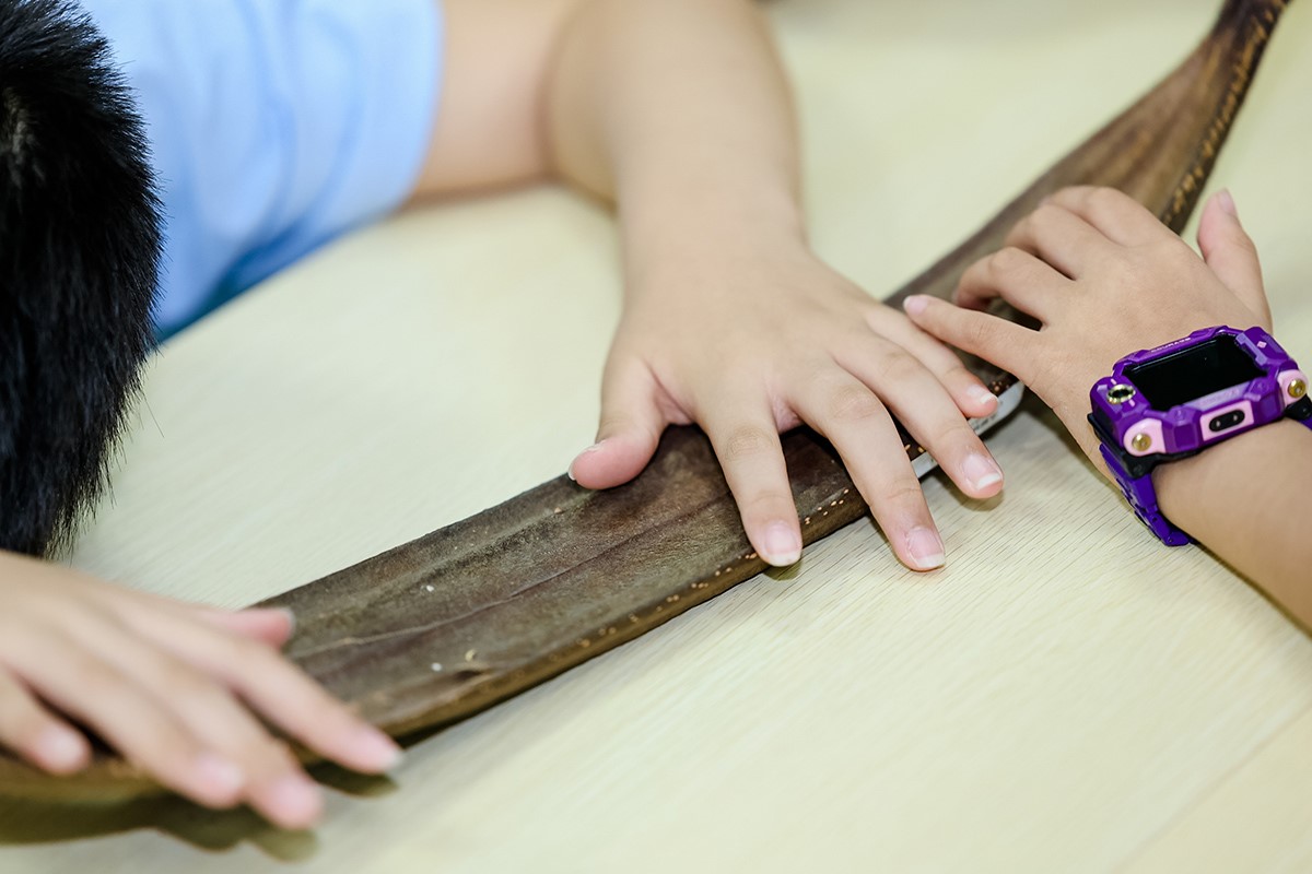 辰山植物园则利用本身的资源开展了两场围绕“五感”的自然体验活动。在“种子和香料”环节中,让孩子们通过手去触摸不同的种子,感知种子外壳的不同质地,再通过摇一摇种子,听一听不同果荚的声音。当孩子们触摸到世界上最大的种子——海椰子的时候,脸上都露出了非常惊讶的表情,世界上竟然有这么大的一粒种子!不少孩子脱口而出“这是一颗‘大屁股’种子,比我的屁股还大”。教室里顿时一片欢声笑语,家长们也被孩子的天真逗乐了。