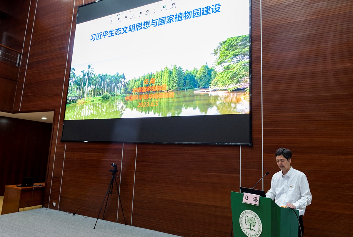 任主任着重阐述了习近平生态文明思想的形成过程、核心内涵和习近平总书记关于生物多样性保护的重要论述,既提纲挈领,又内容详尽。并结合植物园的中心工作,阐释了建设国家植物园体系的意义、世界一流国家植物园的主要特征等等,让大家对国家植物园有了更加清晰和准确的把握。最后结合实际,介绍了华南国家植物园的建设内容。讲座既有理论高度,又有实践深度,是“学思用贯通、知信行统一”的典范。