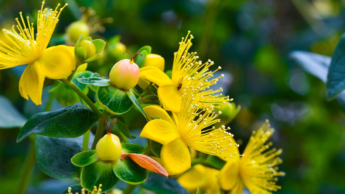 它的诞生,是一场跨越千年的“基因对话”。粉果金丝桃是园艺学家对观赏性金丝桃属(如H. androsaemum)进行杂交选育,通过调控花青素合成基因,使其果实从传统的红色蜕变为樱花粉色。而这一属中的明星药用物种——贯叶连翘(Hypericum perforatum),自古便是中医药典与欧洲草药学的双重瑰宝。