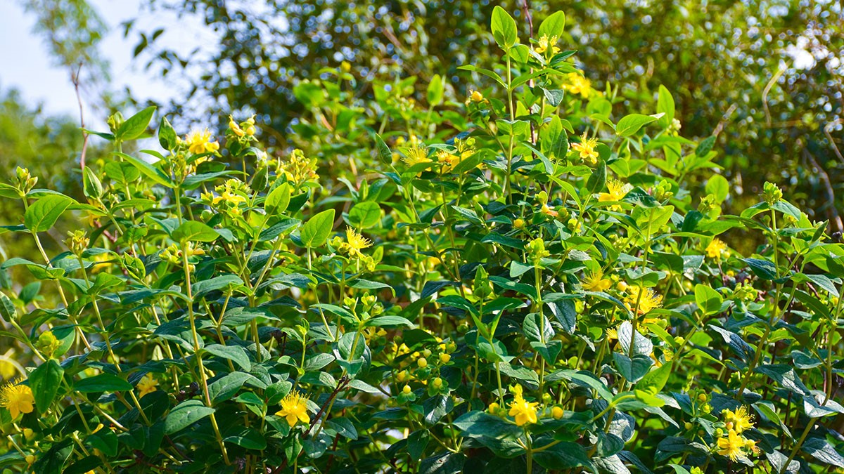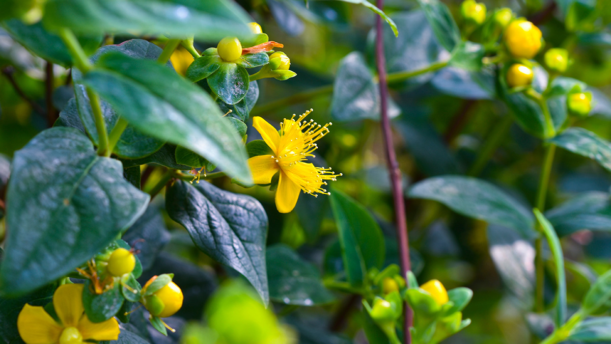 贯叶连翘的叶片密布透光腺点,古人将其鲜叶捣碎外敷,治疗烧伤与蛇咬;现代研究更发现,其腺点中富含的贯叶金丝桃素(hyperforin),可通过抑制神经递质再摄取从而调节情绪,成为抗抑郁的天然良方,疗效与氟西汀相当且更少副作用。