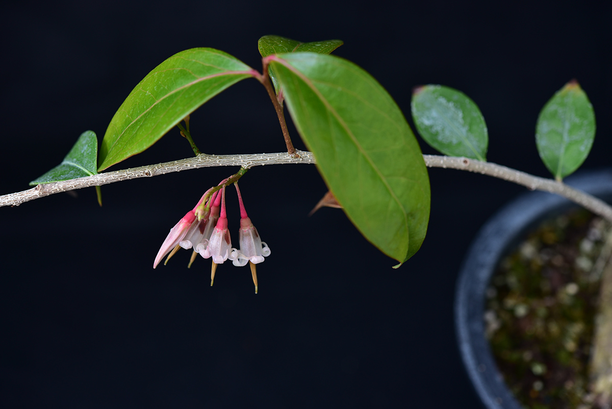 近日,辰山植物园保种温室栽培的一棵深裂树萝卜(Agapetes lobbii),在园艺景观部技术人员的精心培育下,于老枝上开出了一簇铃铛状的粉色小花,这标志着深裂树萝卜在辰山植物园引种试种初步成功。