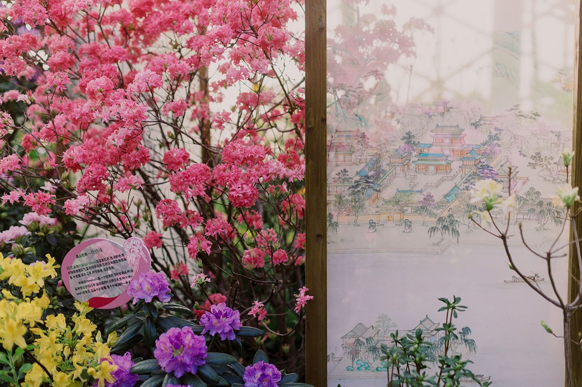“画屏点春”展区位于展览温室A馆(热带花果馆),本次花展将通过东方美学画卷形式展示。将杜鹃花作为重要载体,结合不同时期的历史和文化背景,展现历史长河中杜鹃花所承载的文化记忆和审美演变,传递出跨越时间、空间的文化传承与思考。展区将展出各类高山杜鹃30余个品种。