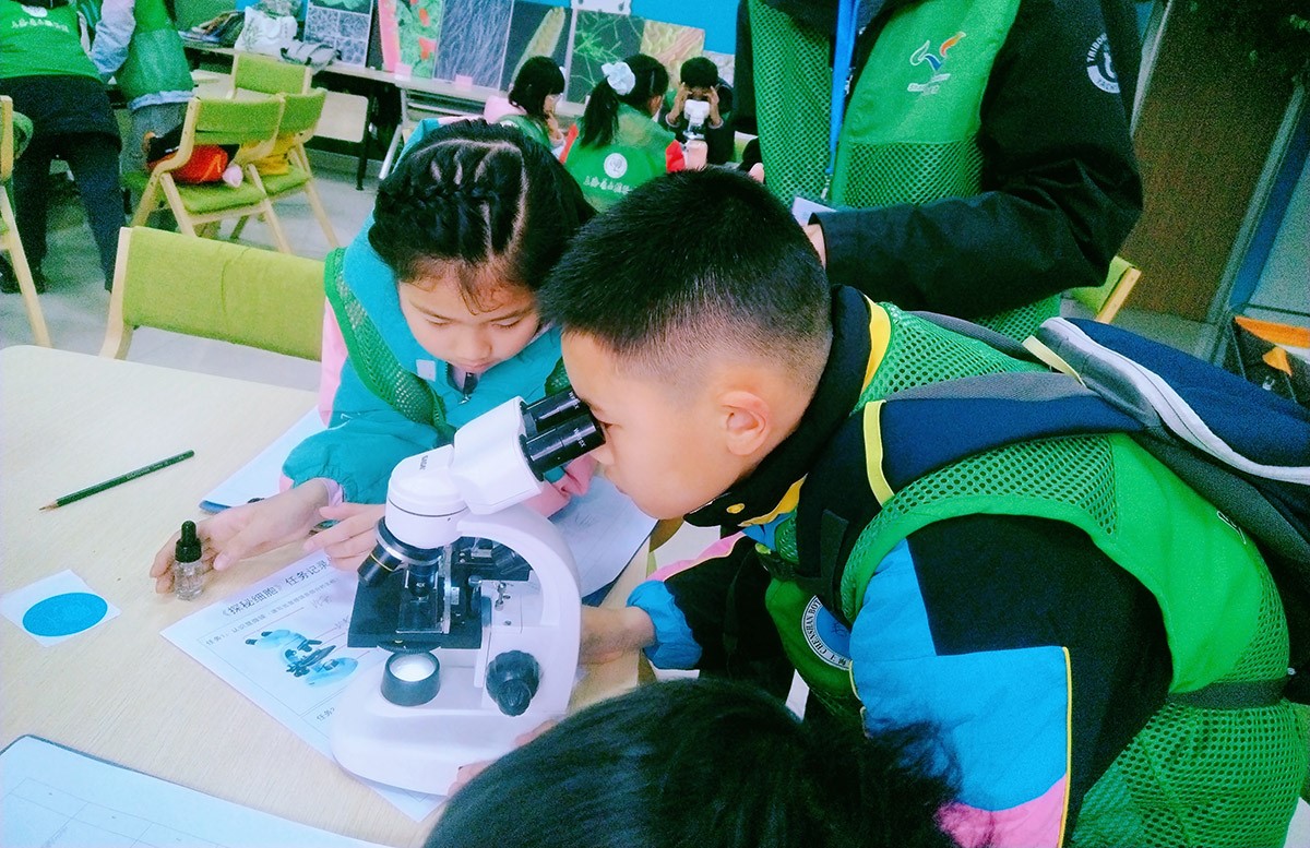 在首期课程中,20余名小学员在科普老师的带领下,走进奇妙的植物细胞世界。孩子们利用显微镜观察到平时肉眼看不到的微观世界,感受到了自然界的神奇与奥秘。“生命的基本组成单元是什么?”“我们的眼睛能看到所有的生命状态吗?”在“探秘细胞”课程中,大家了解到生命的基本组成单元是细胞;第一个用显微镜看到细胞的科学家胡克等科学知识。