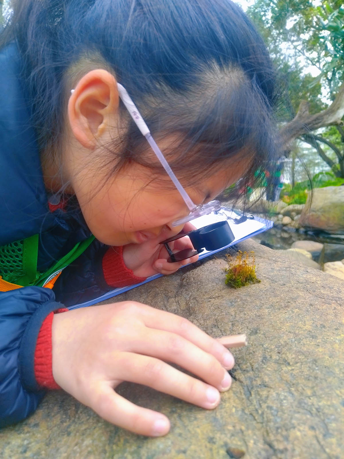 在老师的带领下,大家熟悉了显微镜的结构、功能以及如何规范使用,利用放大镜和显微镜观察到了在不同放大倍数下植物的微观结构,如蕨类的孢子囊群、苔藓的孢子囊、洋葱表皮细胞等。学生们在探究的过程中锻炼了科学思维和科学方法,逐渐了解到科学家做科学研究的思路:观察、提出假设、经过验证、总结出自己的结论。课程的设计对孩子们的思维方式有一定的引导和锻炼,有助于培养其独立思考、科学求证的逻辑思维模式。