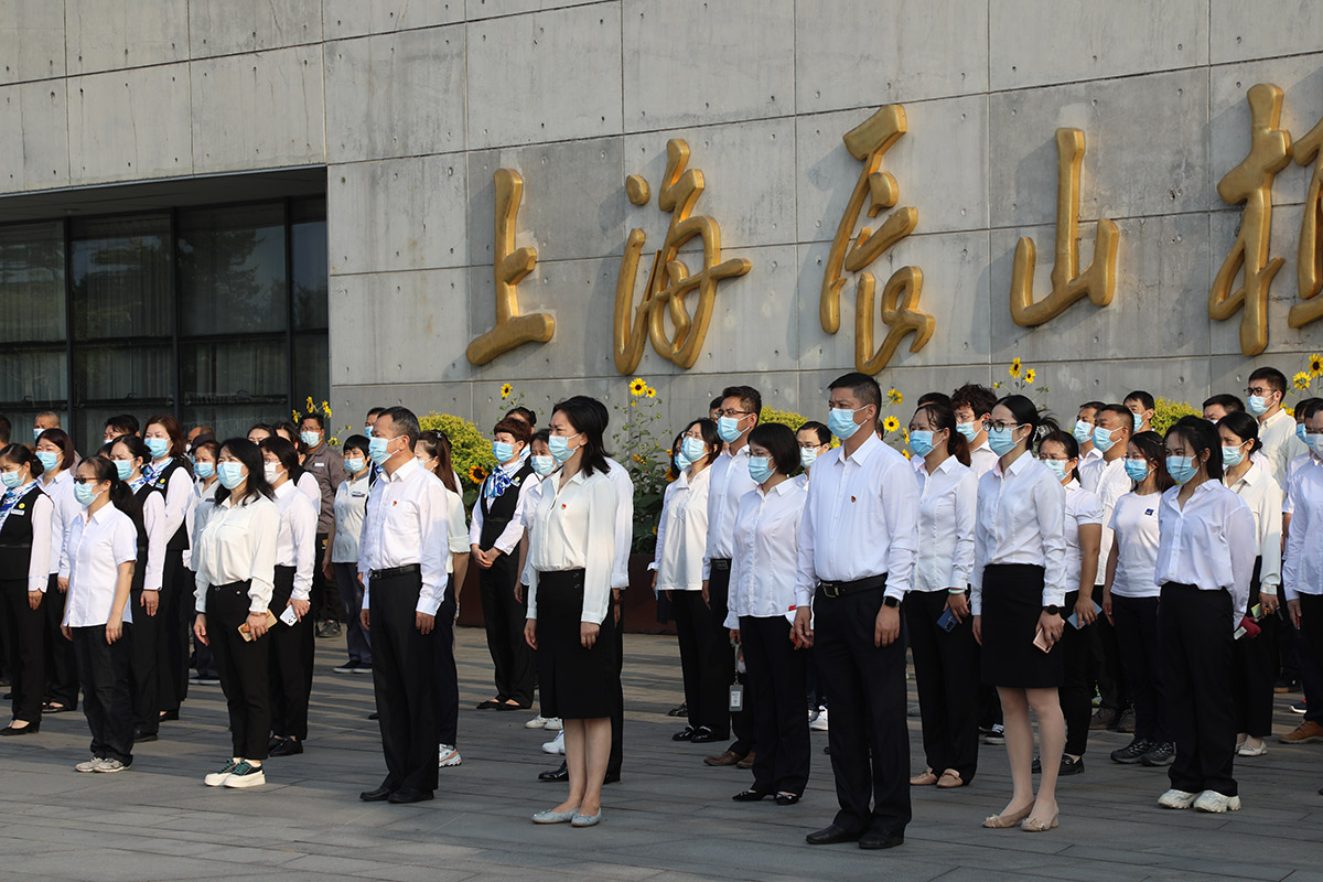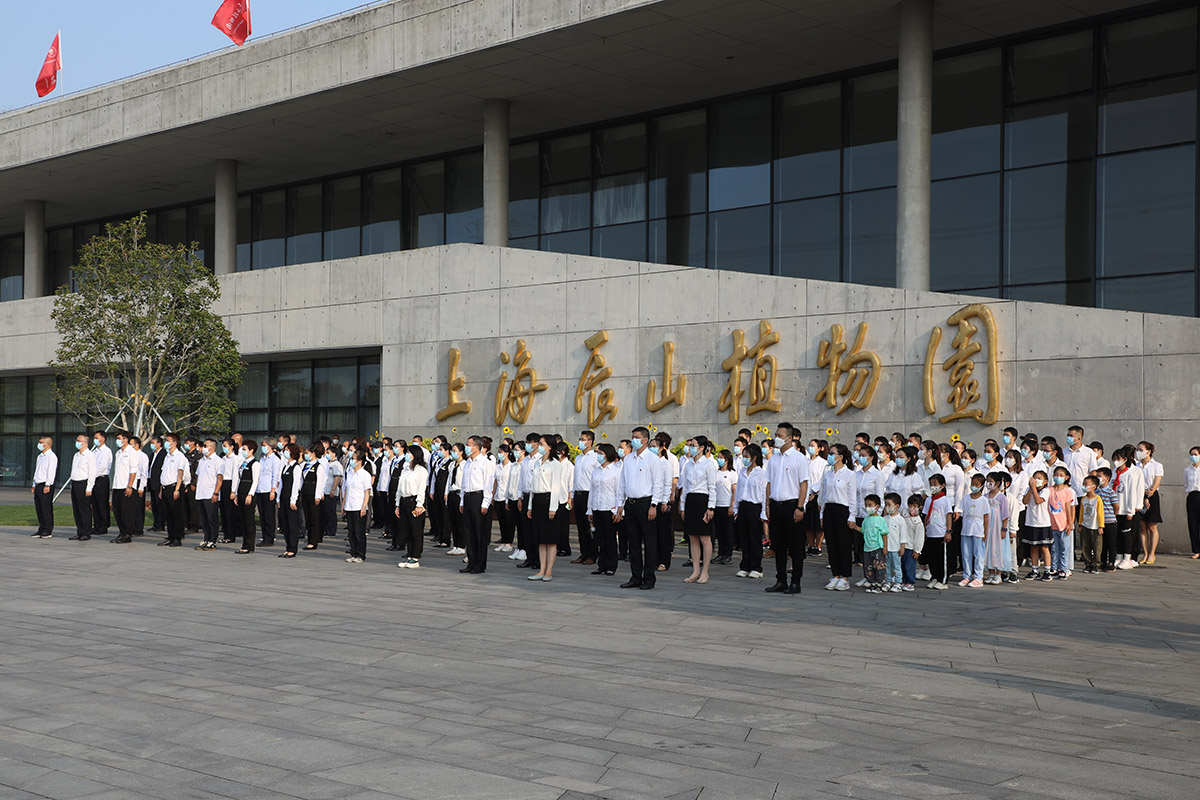 10月1日,在严格落实疫情防控政策要求和个人防护措施下,辰山植物园领导班子带领全体职工、明华物业、养护公司、施工企业代表等齐聚一号门南广场,隆重庄严地举行国庆升旗仪式,庆祝新中国73周岁华诞,送上对伟大祖国的深情祝福。