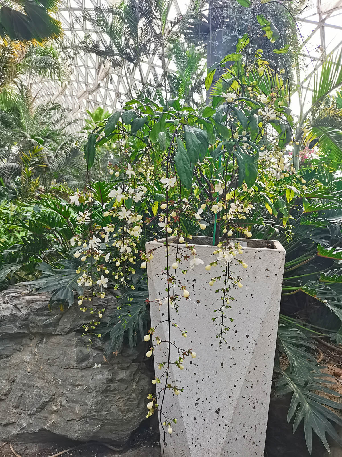 它纤细飞扬的花絮以及密集的花量在降温的秋冬季节,像极了雨林里面随风飞舞的雪花。自从2019年引种至辰山植物园后,在后备温室经过园艺师一年多时间的扦插、修剪、施肥、浇水等精心培育,于2021年春节期间首次绽放,今年又如期迎来盛放,为2022年新春佳节的辰山增添了一道亮丽的风景。其盛花期可持续1-2个月,非常适合家庭园艺或者盆栽种植。
