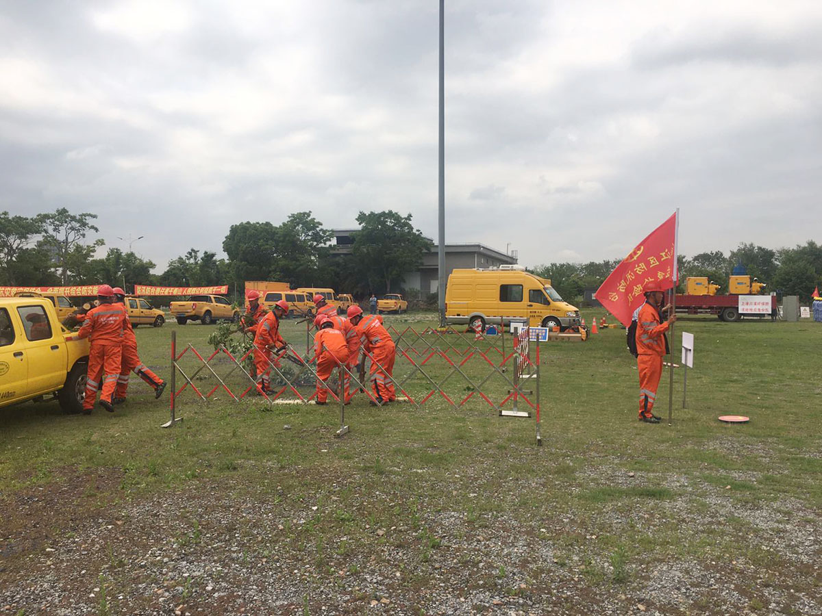 2020年5月21日下午两点,由松江区防汛指挥部组织的防汛防台应急抢险演练在上海辰山植物园一号门停车场开展。