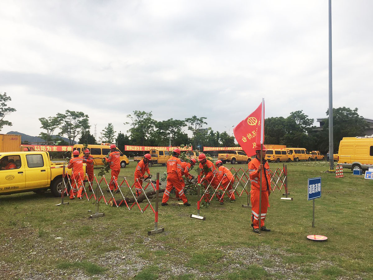 辰山植物园派出由十人组成的专业抢险队伍参加演练,主要演示道路清障科目。模拟台风期树木倒伏阻断道路,我园抢险队接到通知快速到达现场,在三分钟内及时快速的排除险情。