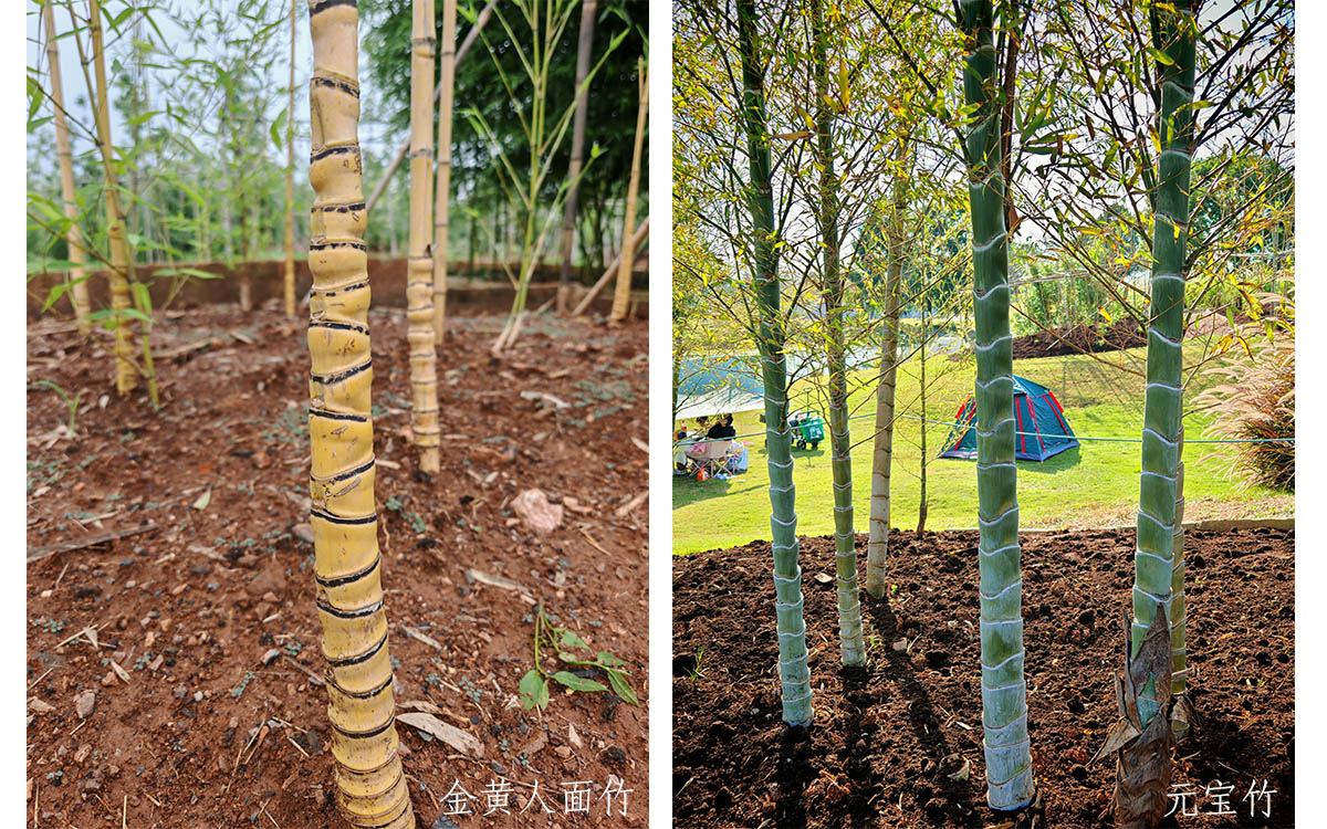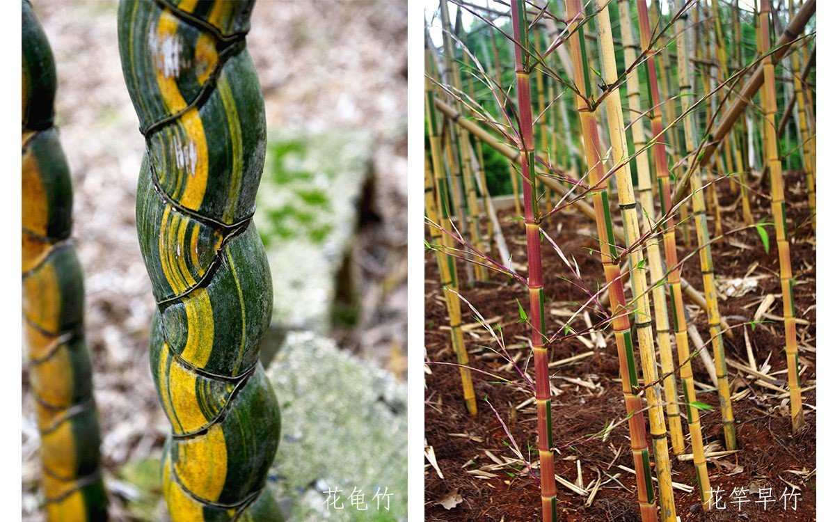 针对这些问题,竹园三期改造工程分阶段实施,重点引种了三类特色竹种,一是珍稀濒危竹种,其中包括:花龟竹、龟甲竹、元宝竹、金镶玉竹、人面竹、实心竹等极具特色的珍稀竹种,同时还引种了安吉金竹、刺黑竹等濒危的中国特有竹种;二是有针对性地引种了部分大熊猫可食用的竹种,如:巴山木竹、桂竹、金竹、篌竹、硬头青竹、斑苦竹等;三是观赏价值较高的观赏竹种,如:观竿的金黄人面竹、黄槽人面竹、绿槽人面竹、绿皮花毛竹、对花竹、黄槽斑竹、花竿早竹等,赏叶的翁竹、白纹阴阳竹、花叶唐竹、白纹东根笹、菲白竹、菲黄竹等。并采用水泥预制板进行了全面控根,有效解决了导览和休憩空间缺乏、竹种之间窜根严重的问题。